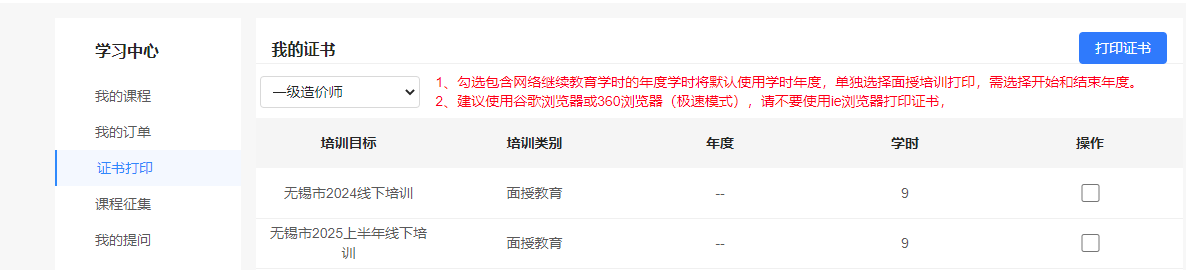 关于2025年度上半年无锡市注册造价工程师继续教育现场培训证书打印的通知如下:
