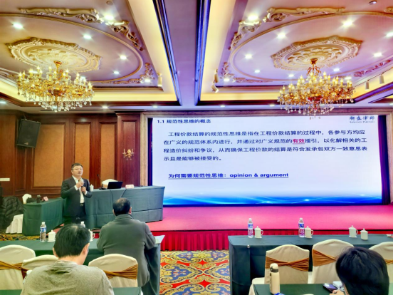 江苏联盛律师事务所彭钊律师以《规范性思维与工程结算痛难点的解决》为主题,强调以法律和合同为根本依据,引导学员夯实规范性思维的基础。课程条分缕析地探讨了合同解释、价款确定、签证索赔及物价波动调差等结算关键问题,结合大量实例,为学员构建起以规范性思维破解结算困境的切实路径。