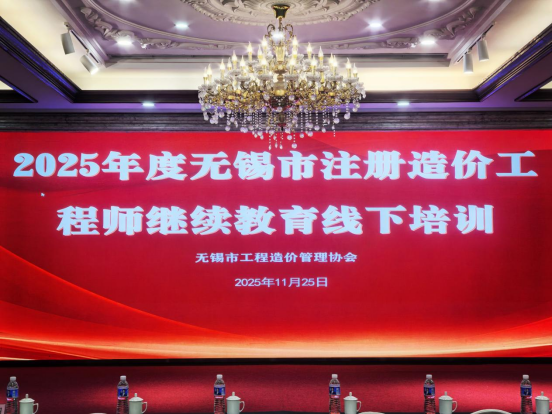 2025年11月25日至26日,2025年下半年无锡市注册造价工程师继续教育现场培训在山明水秀大饭店成功举办。在为期一天半、共计9学时的培训安排中,课程内容覆盖技术前沿、法律实务与职业操守,为学员们带来一场深度与广度并存的知识更新。共计300余名造价师参加了本次培训并进行了培训成果考试。